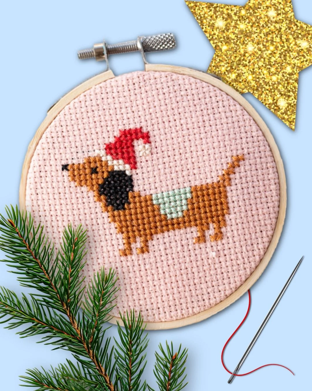 6. Cotton Clara Christmas Dachshund Cross Stitch Kit